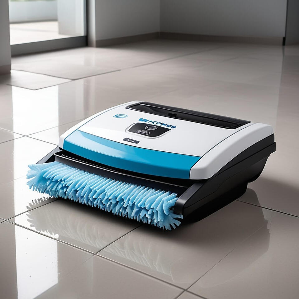 The microfiber wiper moves across the wet floor to absorb and wipe away water, using its high absorbency to clean effectively. After the wiper collects moisture, the integrated fan blows air over the floor, speeding up the drying process and preventing puddles or water spots.