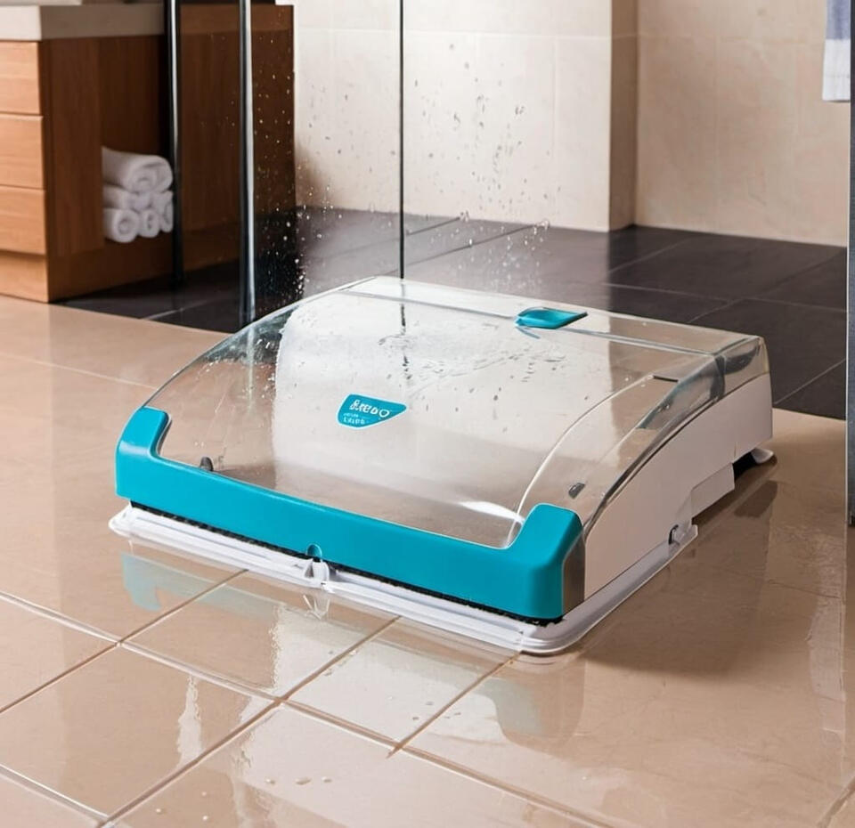 Our remote-controlled wiper with microfiber roller and built-in fan leaves your bathroom floor spotless and dry—without the hassle!